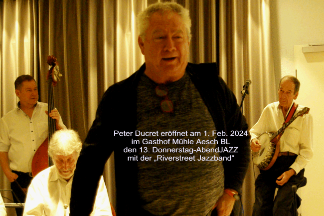 01. 02. 2024 Den 13. DonnerstagsJazz im Gasthof Mühle BL „Riverstreet Jazzband“ 7 Musiker;